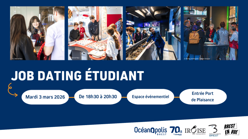 Le mardi 3 mars 2026, Océanopolis et ses partenaires organisent un job dating pour les étudiants.
