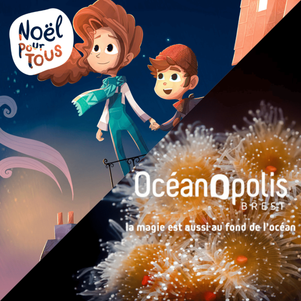 En cette fin d’année 2025, nous vous proposons, en partenariat avec Noël pour Tous, une offre familiale exceptionnelle : un pack de 4 places comprenant le spectacle « Noël Pour Tous – Au delà des Toits » et une visite à Océanopolis entre le 16 décembre 2025 et le 4 janvier 2026.